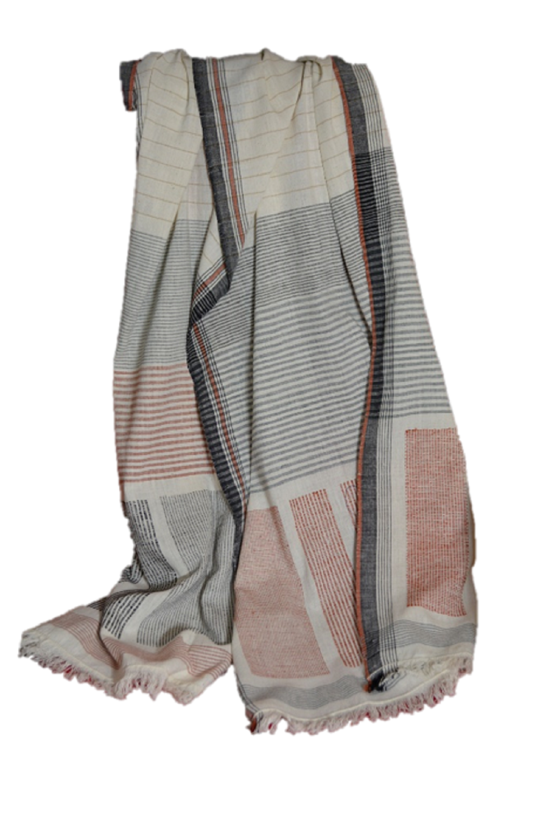 OMSutra's blanket is for the free-spirited. This comfy couch companion from India is handwoven by the artisans and women weavers from central India, working to preserve family traditions. The artisan weaves this throw by hand on a traditional loom, carefully choosing threads to elaborate the border with delicate tassels. The main body features a solid color in ecru decorated with intricate patterns of different colors, and the border has a framework in red and black color, combining lively patterns and eclectic textures for a traveled look. This weaver artisan uses traditional techniques handed down through the generations and/or creates culturally significant textile products, helping to keep these traditions alive. This artist positively impacts their community through job creation and provides jobs for more people.